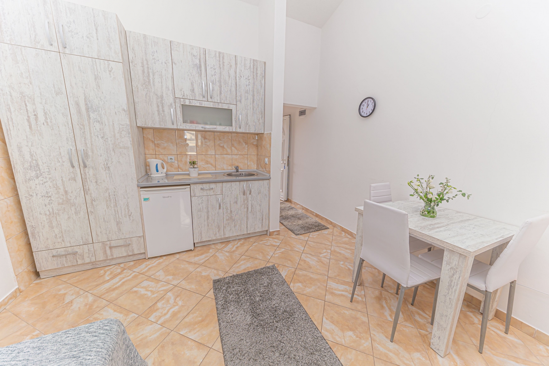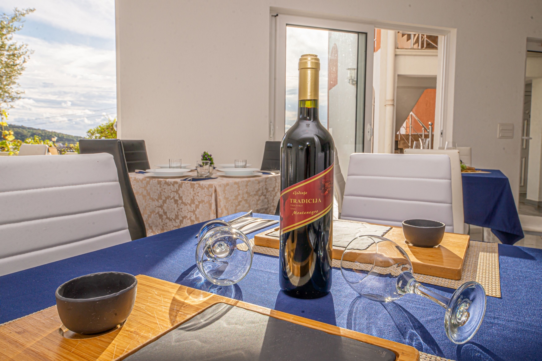 Všechny naše apartmány mají samostatné terasy, odkud si můžete vychutnat nekonečný výhled na moře. Apartmány mají mini kuchyň, koupelnu, vybavené moderním nábytkem. Ve dvoře domu je terasa s bazénem. Soukromé parkoviště. V sezóně pracujeme na polopenzi, takže si dovolenou můžete doplnit tradičními chutěmi Černé Hory z naší kuchyně a dopřát si požitek.