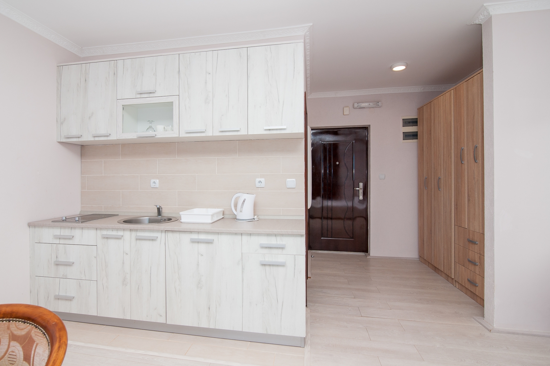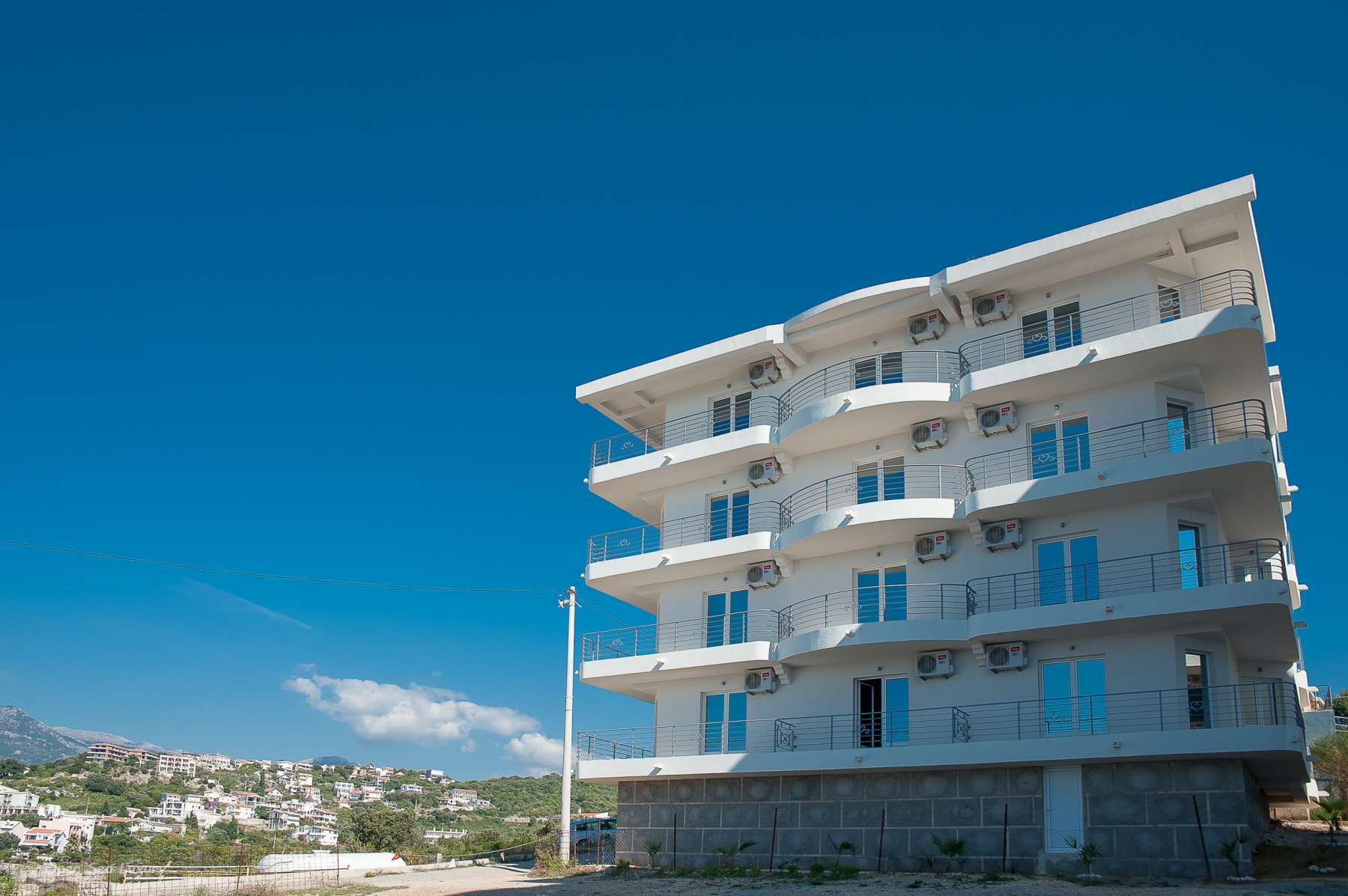 Vchody do všech apartmánů se nacházejí v budově z posledního schodiště, protože balkony všech apartmánů jsou obráceny k moři. Každý balkon je vybaven stolem a židlemi. Hosté grilují.Hotel má dostatek bezplatného parkování, oplocené a osvětlené parkoviště. Parkoviště se nachází na jiné ulici. Vzdálenost od hotelu je 150 metrů.