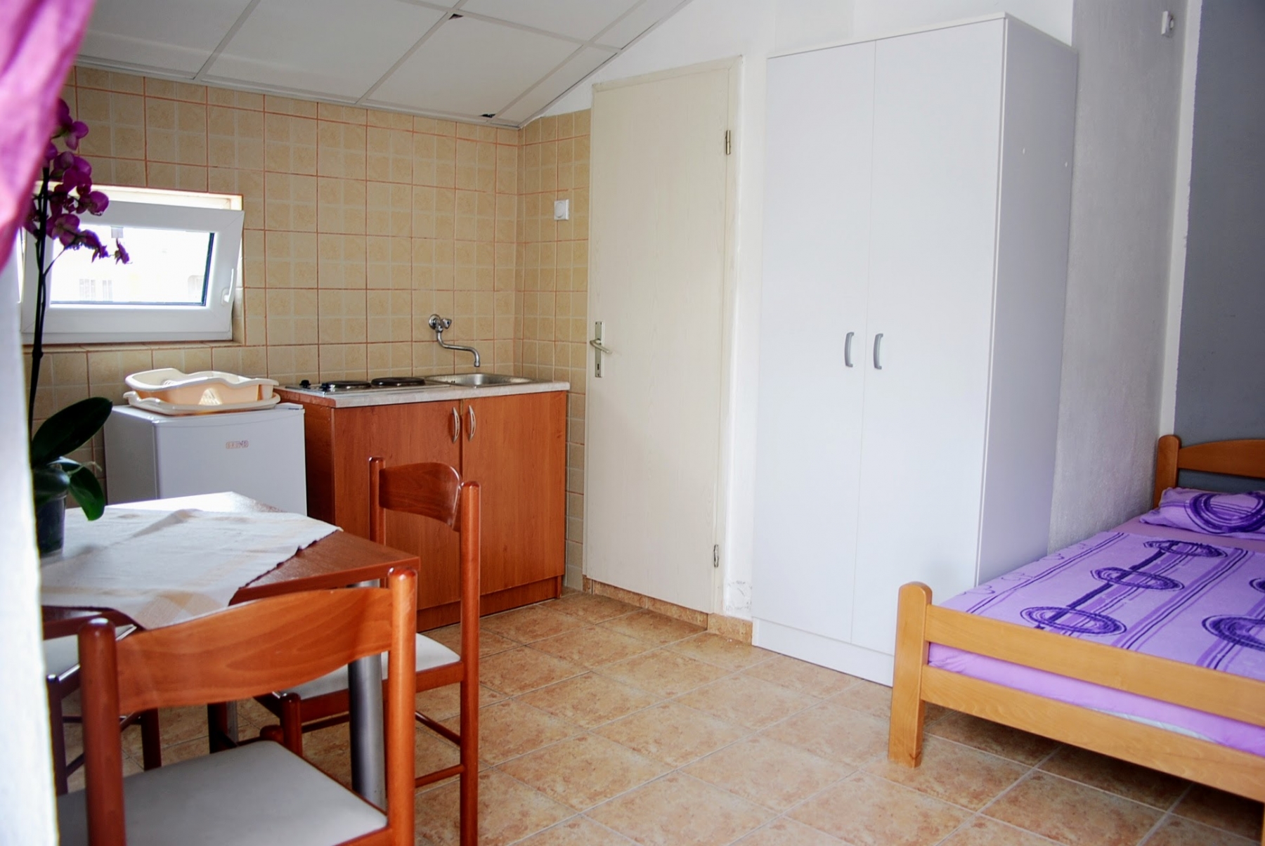 Nudimo sve vrste smestaja od soba do petokrevetnih apartmana.U neposrednoj blizini  kuce veci broj restorana i prodavnica.Plaza sa borovima udaljena svega jedan minut hoda od kuce.
