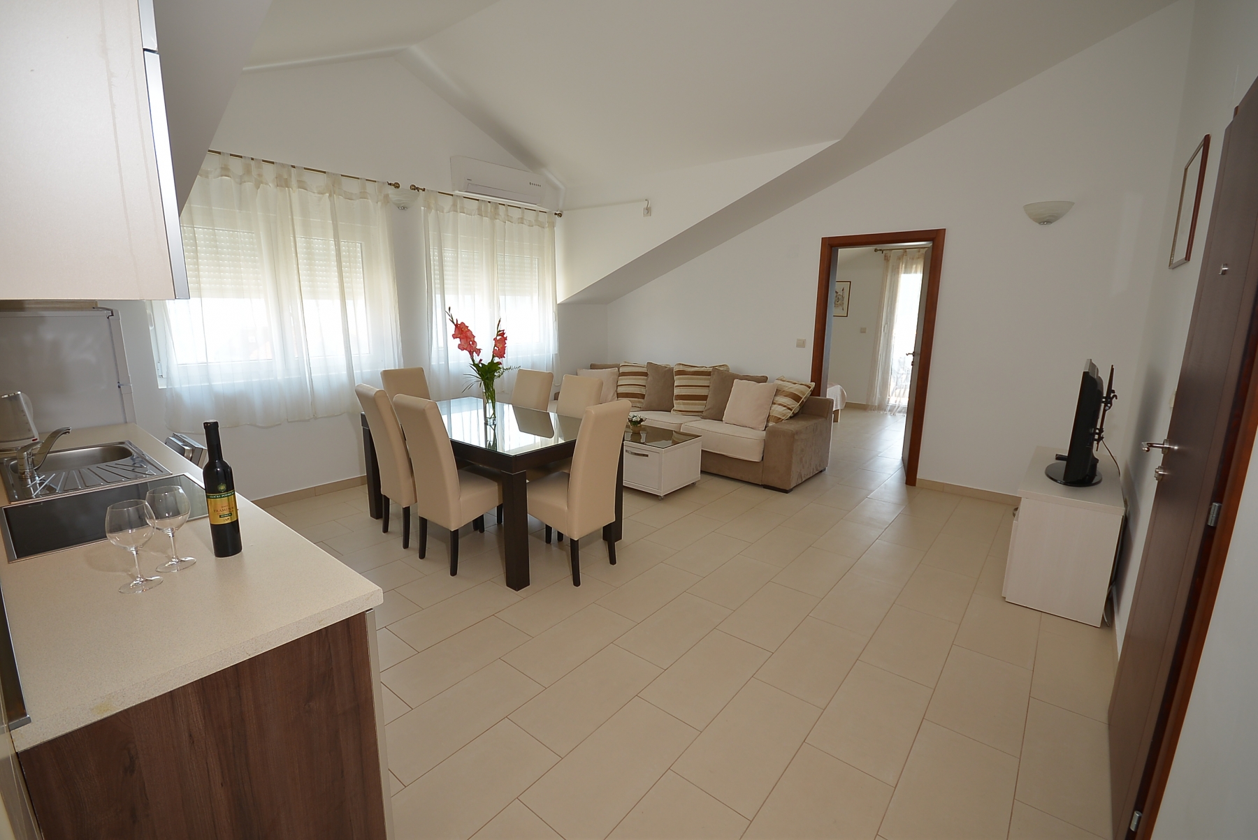 Djenovici are a small tourist destination, 7 km away from Herceg Novi. Nearby is the airports in Tivat and Dubrovnik. Newly built apartments "Vojvodic star" are located on the sea coast. They are 30 meters from the beach. Two bedroom apartments (5 + 2 beds), one-bedroom (3 + 2) beds and studio apartments (3 beds) are offered. All apartments are luxuriously furnished. In addition to quality furniture, the apartments also include air conditioning, dishwasher and all the machines, TV, SAT, internet. Parking place is provided for each apartment. Free offer for the youngest is a crib and feeder. In addition to the apartment guests receive a sun loungers and umbrellas on the beach or pool. Apartments are ideal for family holidays.