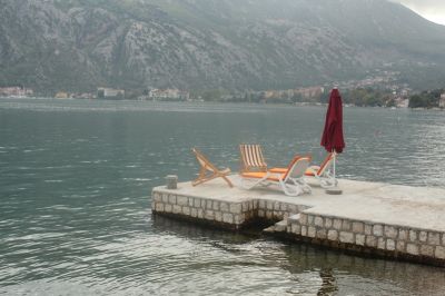 One bedroom, fully equipped and air conditioned apartment with beautiful sea view and beautiful terrace. On the first line to the sea (5m). Distance from the old town about 1.5 km. It consists of a kitchen, a living room (a sofa bed), a bathroom, a bedroom (a double bed), a hallway and a large terrace in front. It is for max.2 adults + 2 children. In addition to the building, there is another large terrace where sunbathing (parasols and parasols), barbecue and outside shower can also be found. In front of the building there is a large, stone private beach intended for the guests of M & T apartments, where there are also parasols and umbrellas. In front of the building Parking is available. Parking, sun loungers and parasols are included in the price. Taxes are not included in the price.