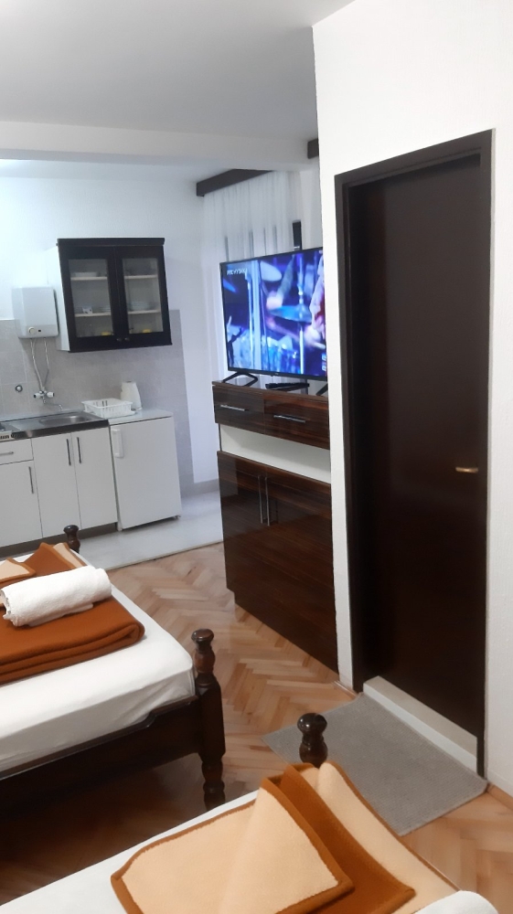 The apartments that are treated as a studio are located in a special building that serves only to provide tourist services in Petrovac, street V number 17. They are located 350m from the city beach and 100m from the first restaurant and shop. The center, where the post office, bank, health center, market and other shops are located, can be reached in 7-8 minutes. Guests can also use the second beach Lučice, which is slightly further from the city and where there are several non-board restaurants and cafes. There are also several sports fields and playgrounds for children nearby. Each unit has a bathroom, mini kitchen with all necessary equipment, safe, TV with multiple programs, air conditioning and free internet. Guests have at their disposal terraces with the necessary furniture and the building has the required number of parking spaces. The maid works in the building and maintains the apartments, and the linen is changed every five days and the towels every two days. We have a total of 10 apartment units with the following structure:3 double (double bed) - 1 classic studio, 1 Lux and 1 new lux.5 triple (one double and one single bed)2 quadruple beds (two double beds).