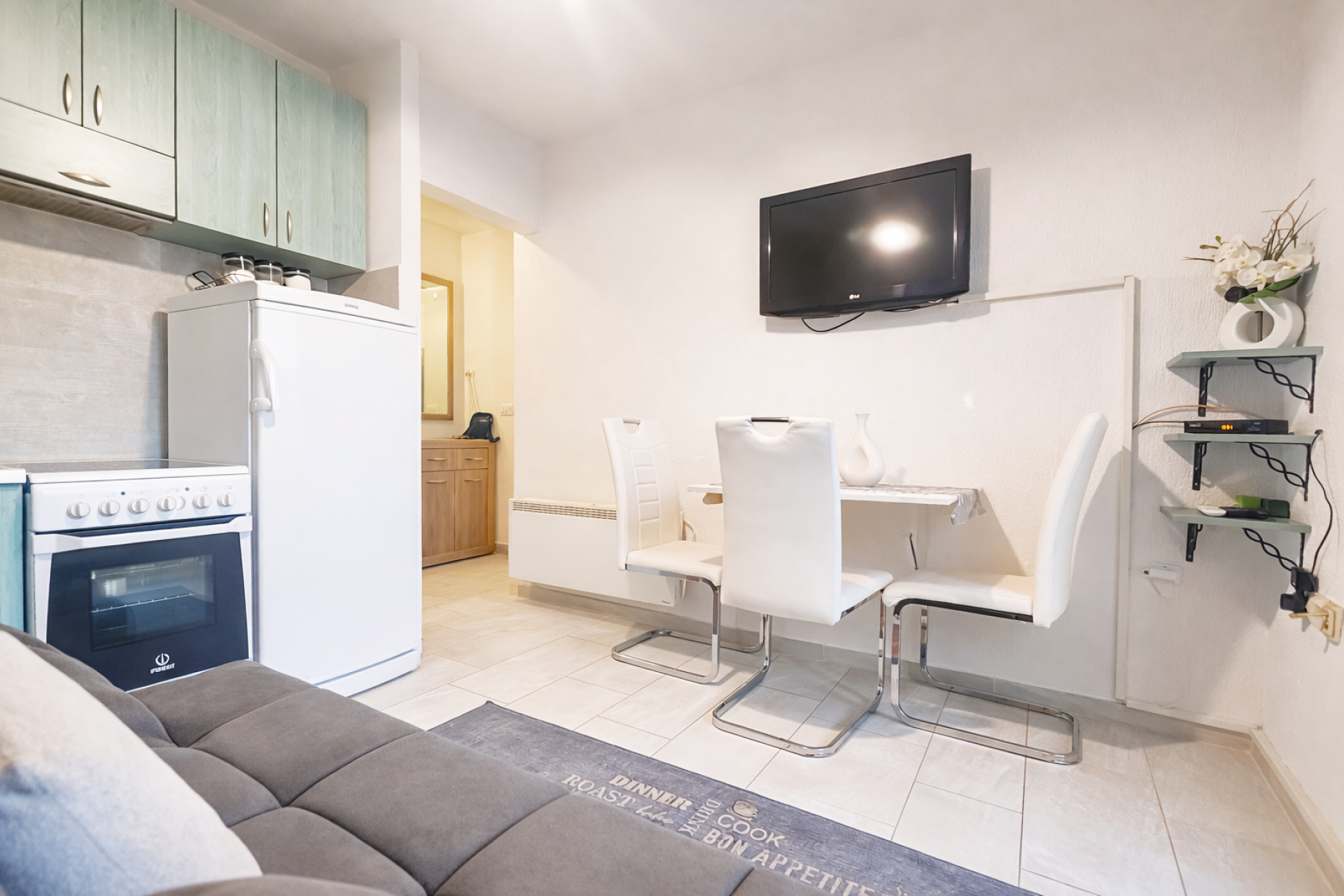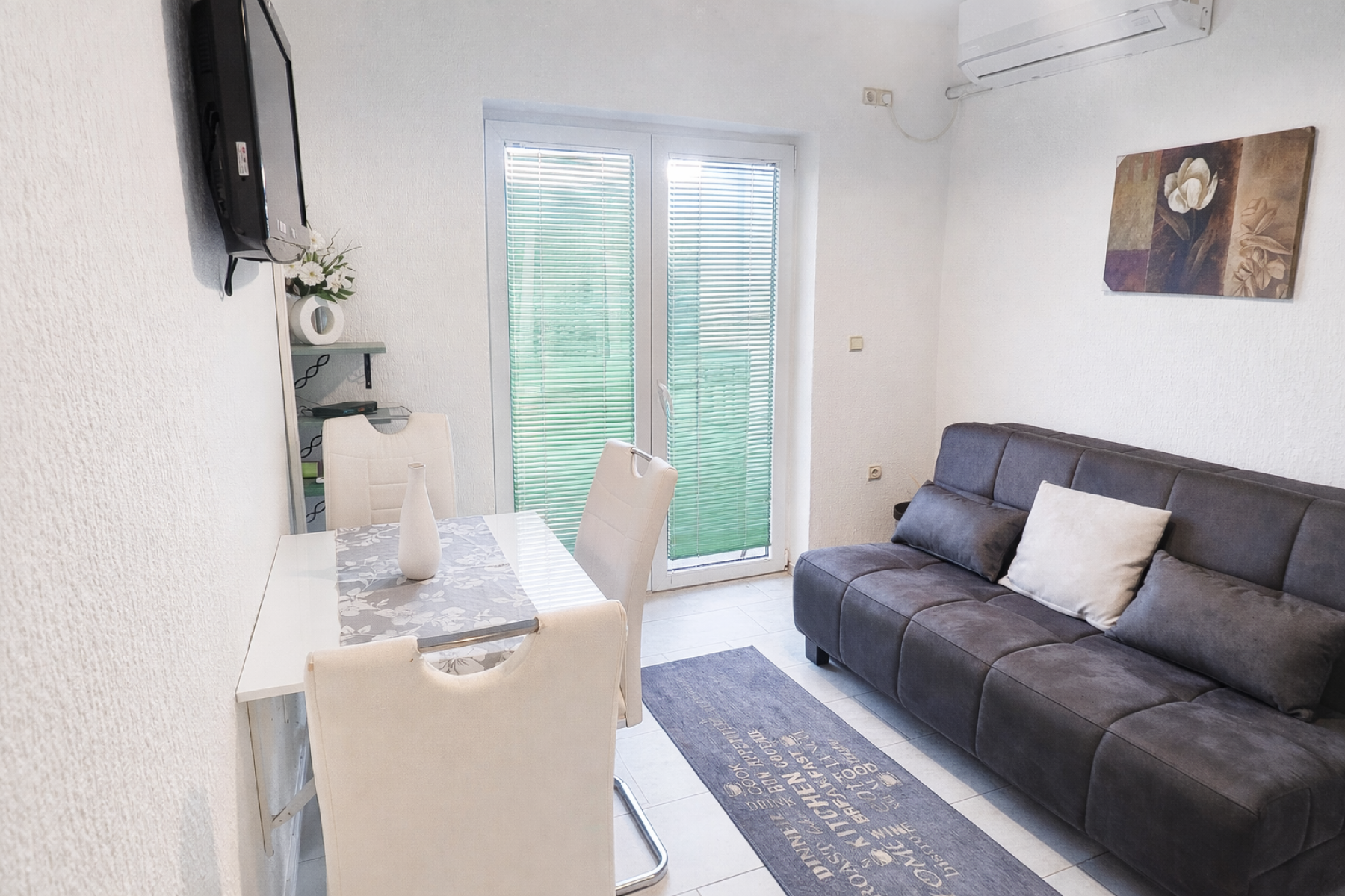 Apartman ima odvojenu spavaću sobu i idealan je za smještaj 2–3 osobe, dok je maksimalni kapacitet 4 odrasle osobe.
