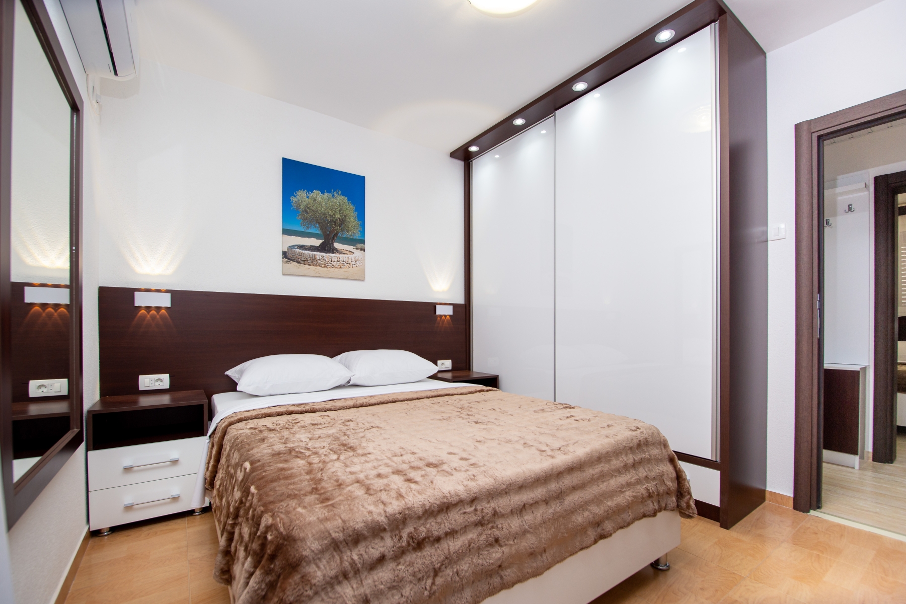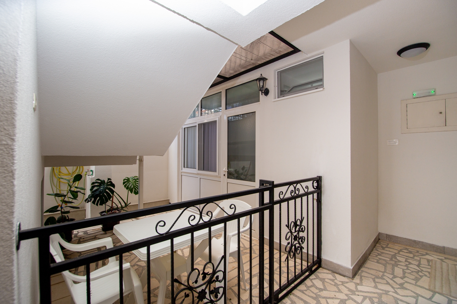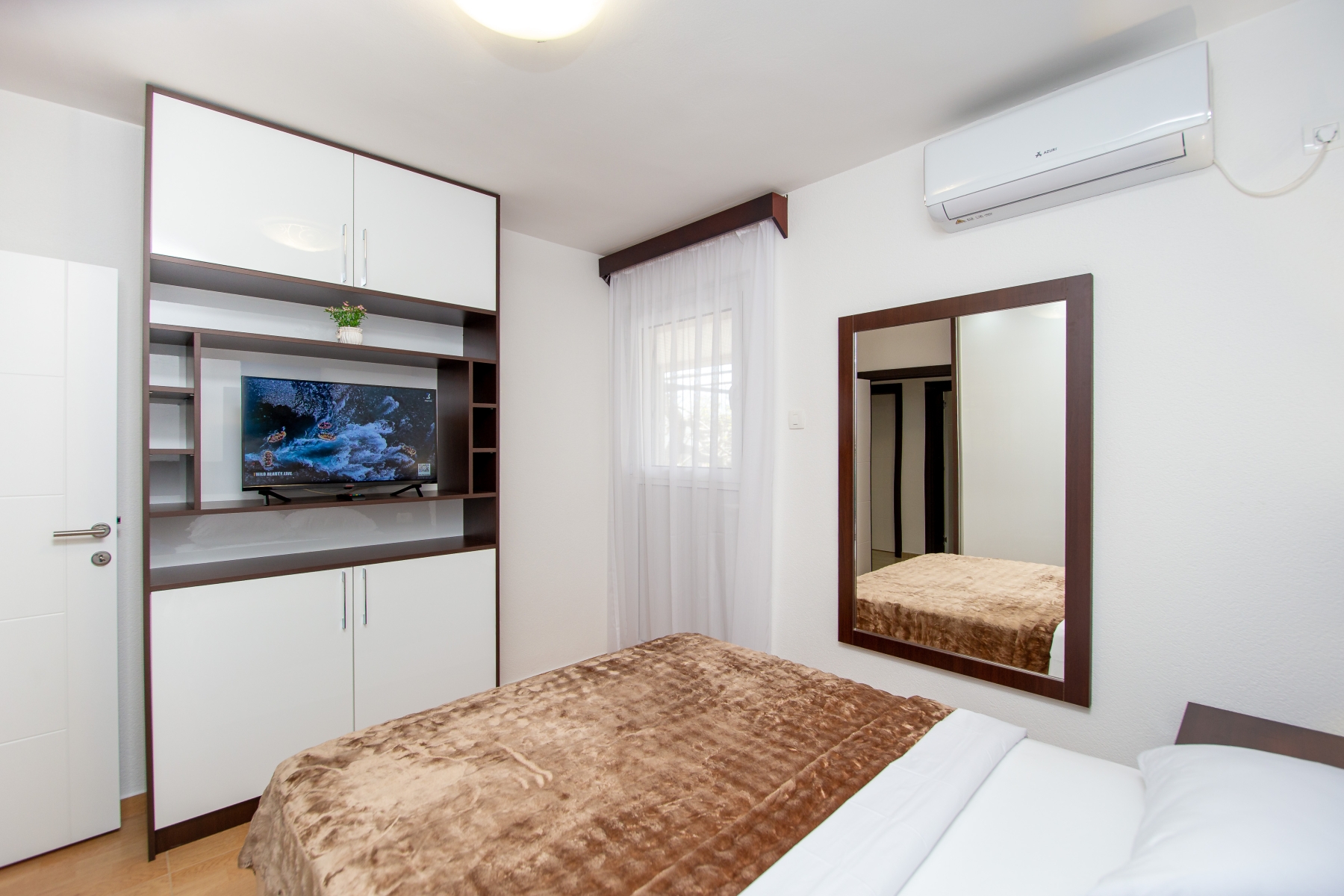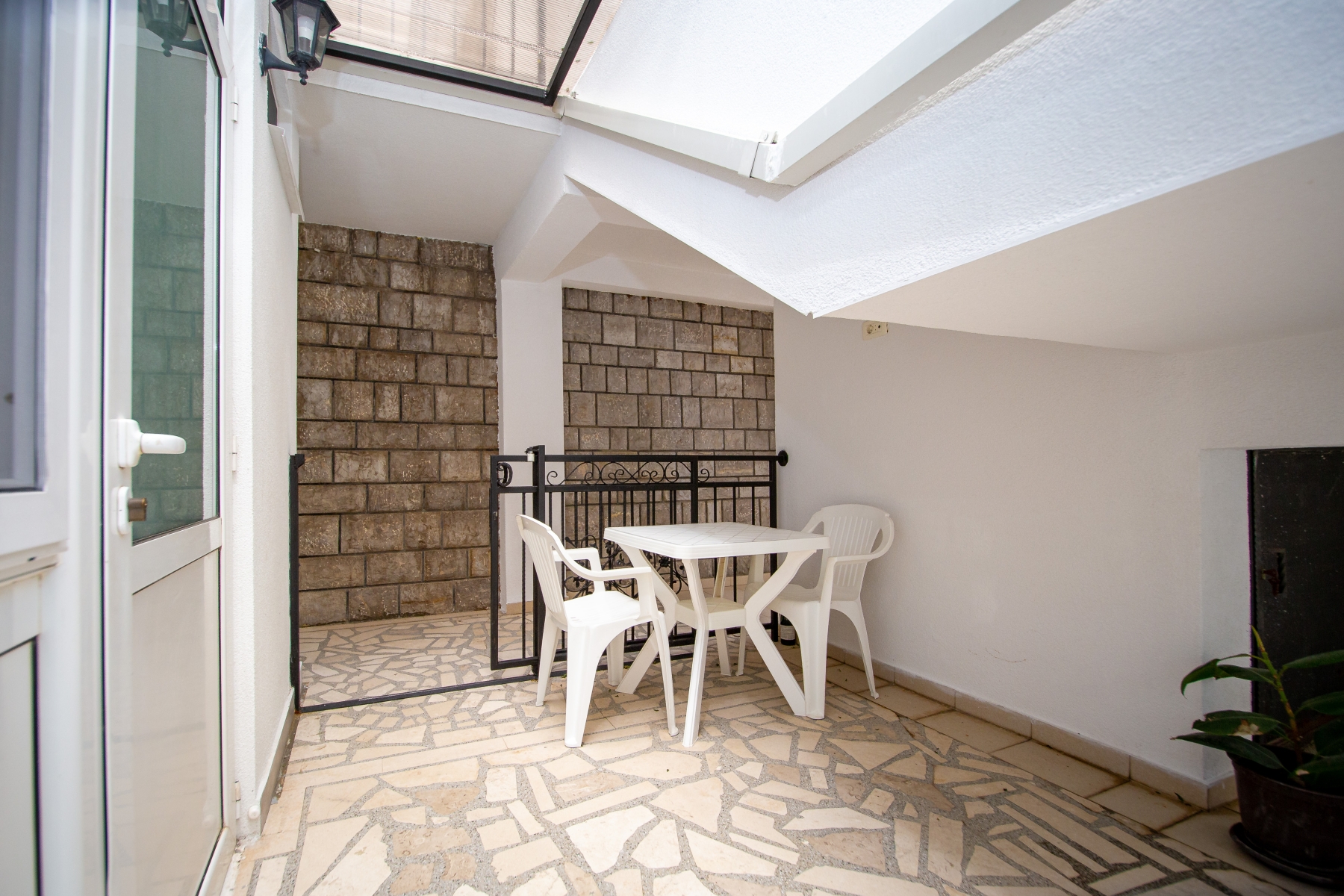 Apartamentet qe trajtohen si studio ndodhen ne nje pallat te vecante qe sherben vetem per te ofruar sherbime turistike ne Petrovc rruga V nr 17. Gjendet 350m nga plazhi i qytetit dhe 100m nga restoranti dhe dyqani i pare. Qendra ku ndodhen posta, banka, qendra shendetesore, marketi dhe dyqane te tjera mund te arrihet ne 7-8 minuta. Vizitorët mund të përdorin gjithashtu plazhin e dytë Lucice, i cili është pak më larg nga qyteti dhe ku ka disa restorante dhe kafene jo-bordi. Aty pranë ka edhe disa fusha sportive dhe kënde lojërash për fëmijë. Çdo njësi ka një banjo, mini kuzhinë me të gjitha pajisjet e nevojshme, kasafortë, TV me programe të shumta, kondicioner dhe internet falas. Mysafirët kanë në dispozicion tarracat me orenditë e nevojshme dhe pallati ka numrin e duhur të hapësirave të parkimit. Ne pallat ka nje sherbim sherbimi, i cili miremban apartamentet, nderrohen liroret cdo pese dite dhe peshqiret cdo dy dite. Ne kemi gjithsej 10 njësi apartamentesh me strukturën e mëposhtme:3 dopio (krevat dopio) - 1 studio klasike, 1 luks dhe 1 luks i ri.5 treshe (një krevat dopio dhe një tek)2 krevate katërfish (dy krevate dopio).