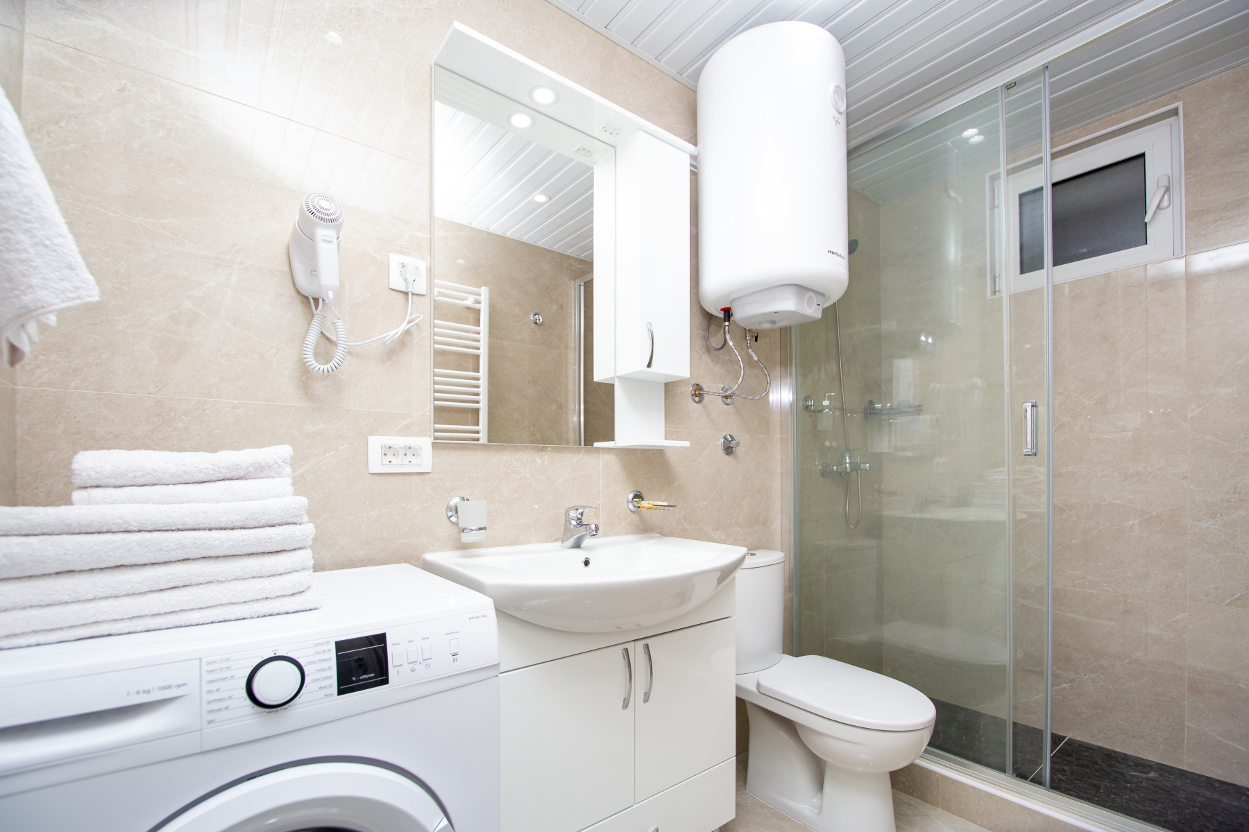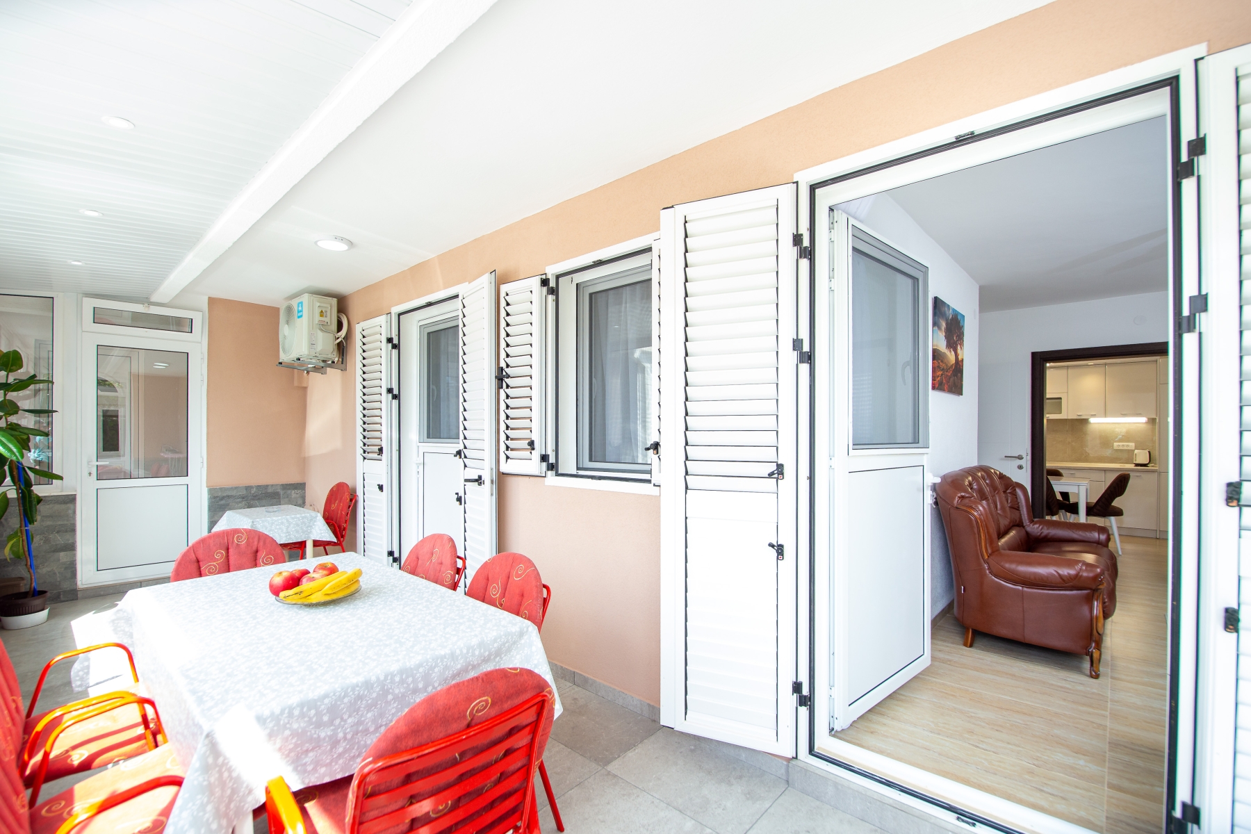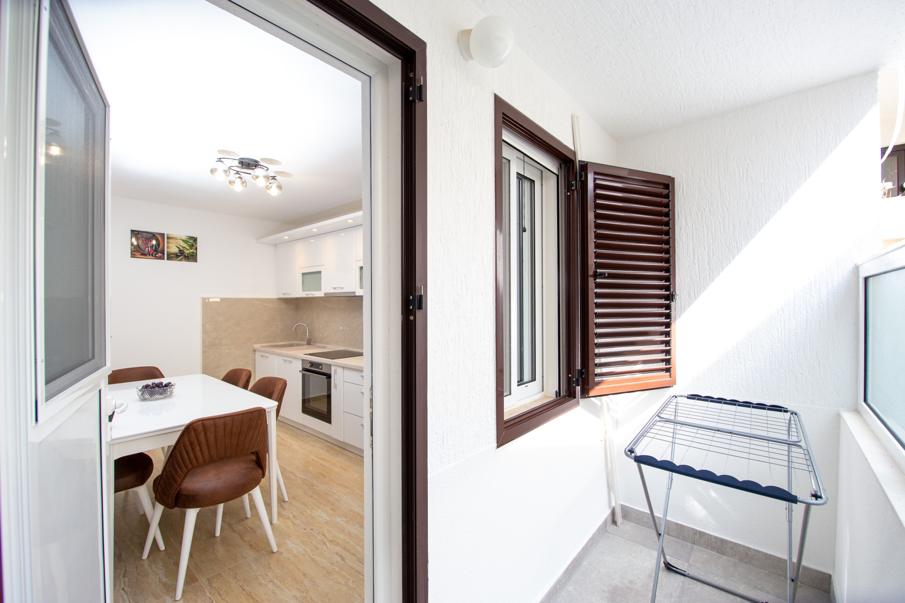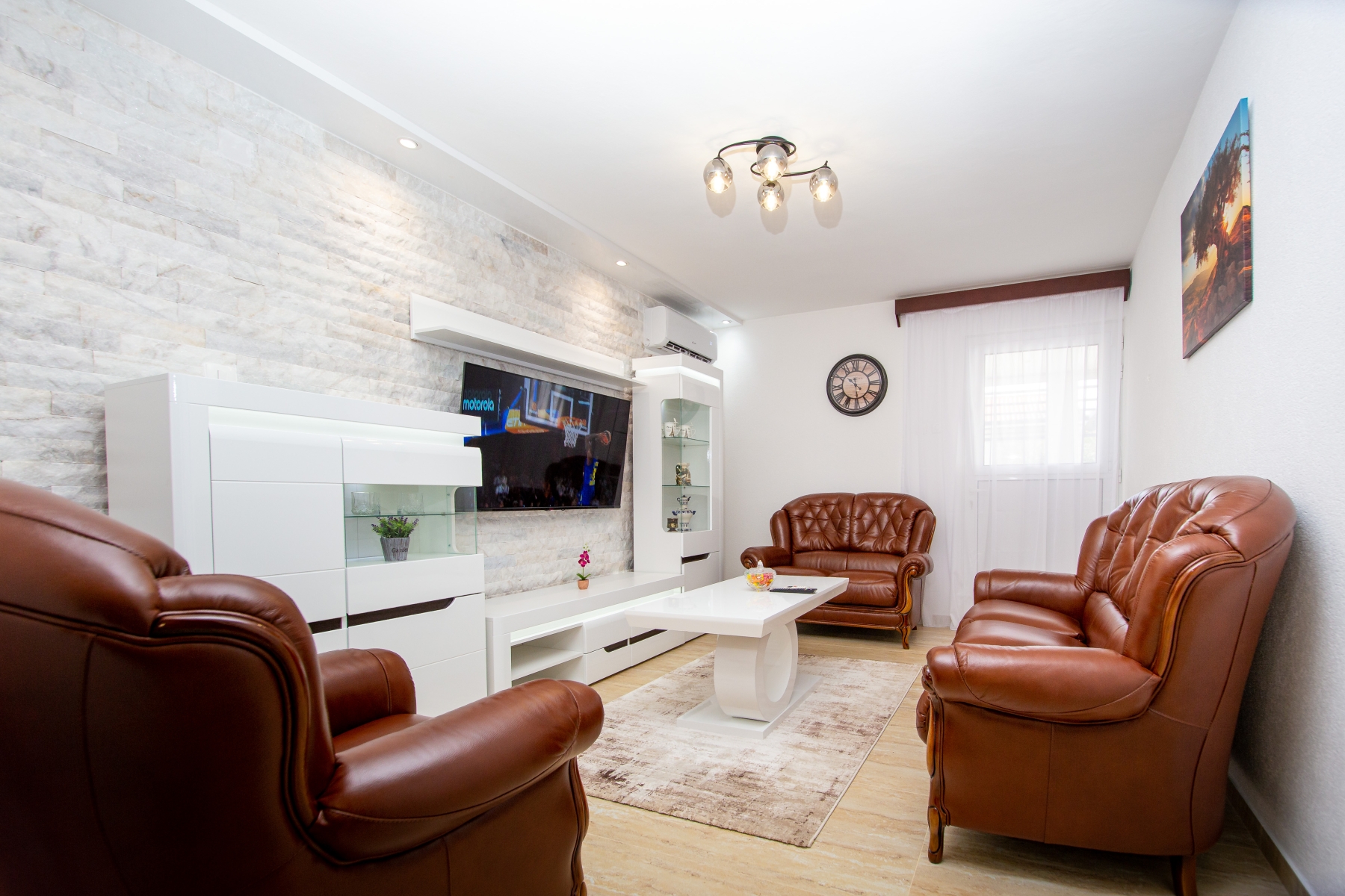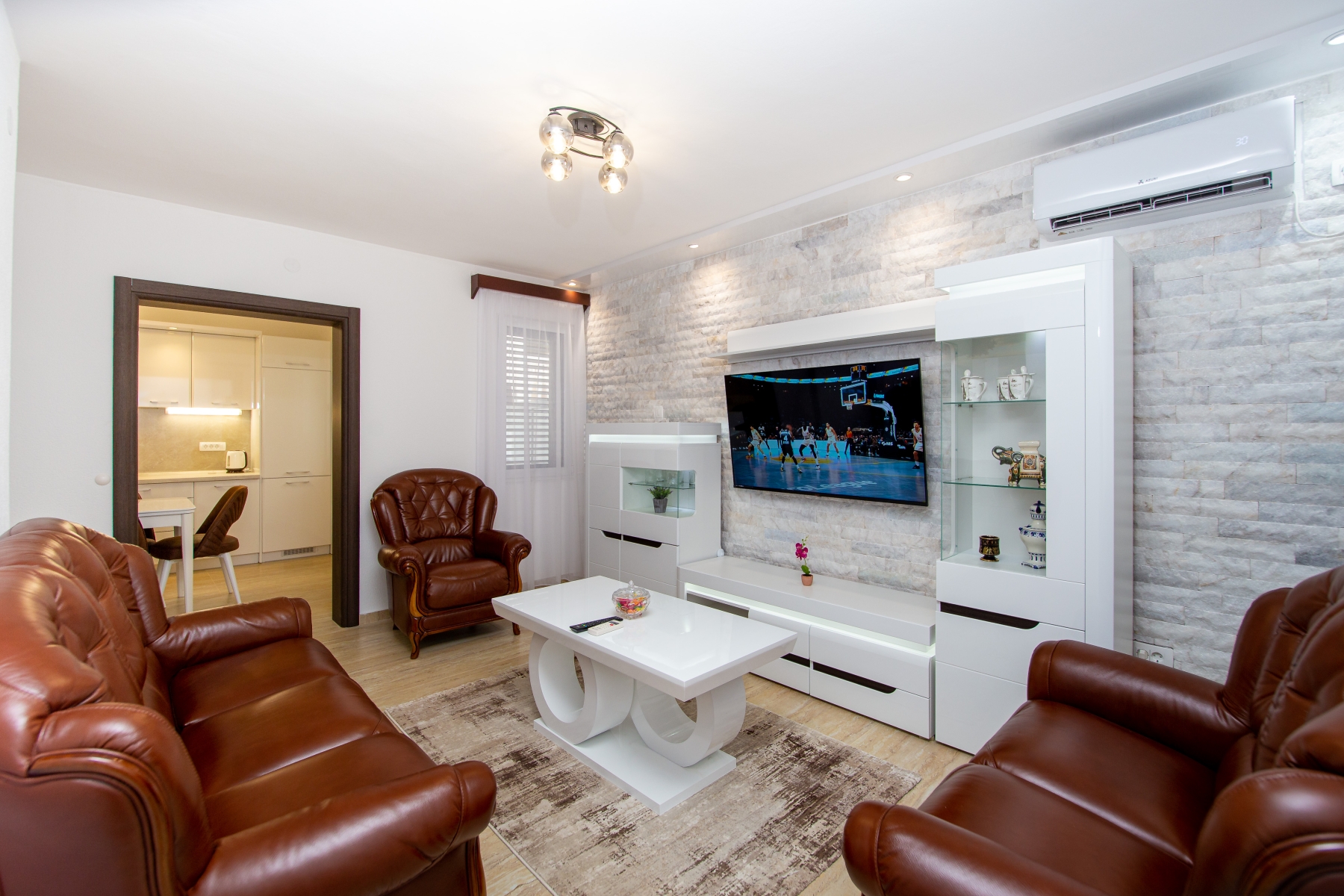 Apartamentet qe trajtohen si studio ndodhen ne nje pallat te vecante qe sherben vetem per te ofruar sherbime turistike ne Petrovc rruga V nr 17. Gjendet 350m nga plazhi i qytetit dhe 100m nga restoranti dhe dyqani i pare. Qendra ku ndodhen posta, banka, qendra shendetesore, marketi dhe dyqane te tjera mund te arrihet ne 7-8 minuta. Vizitorët mund të përdorin gjithashtu plazhin e dytë Lucice, i cili është pak më larg nga qyteti dhe ku ka disa restorante dhe kafene jo-bordi. Aty pranë ka edhe disa fusha sportive dhe kënde lojërash për fëmijë. Çdo njësi ka një banjo, mini kuzhinë me të gjitha pajisjet e nevojshme, kasafortë, TV me programe të shumta, kondicioner dhe internet falas. Mysafirët kanë në dispozicion tarracat me orenditë e nevojshme dhe pallati ka numrin e duhur të hapësirave të parkimit. Ne pallat ka nje sherbim sherbimi, i cili miremban apartamentet, nderrohen liroret cdo pese dite dhe peshqiret cdo dy dite. Ne kemi gjithsej 10 njësi apartamentesh me strukturën e mëposhtme:3 dopio (krevat dopio) - 1 studio klasike, 1 luks dhe 1 luks i ri.5 treshe (një krevat dopio dhe një tek)2 krevate katërfish (dy krevate dopio).