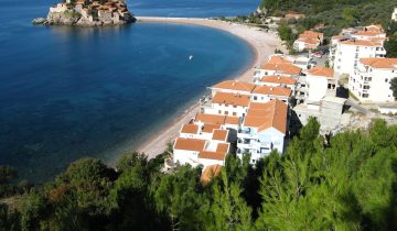 Sveti Stefan, egy város - egy szigeten fekvő szálloda, amely homokos luccsal összeköti a szárazfölddel. A homokos bevonat, amely összeköti a partot és a szigetet, két homokos, vörös piros strand. Ez az exkluzív üdülőhely a 15. századi kereskedők és halászok által épült. 1960-ban városi szállodává vált, köszönhetően híres festőinknek, Lubárdnak és Milunovicnak, akik idegenforgalmi látványosságként ismerik el ezt az óvárost.