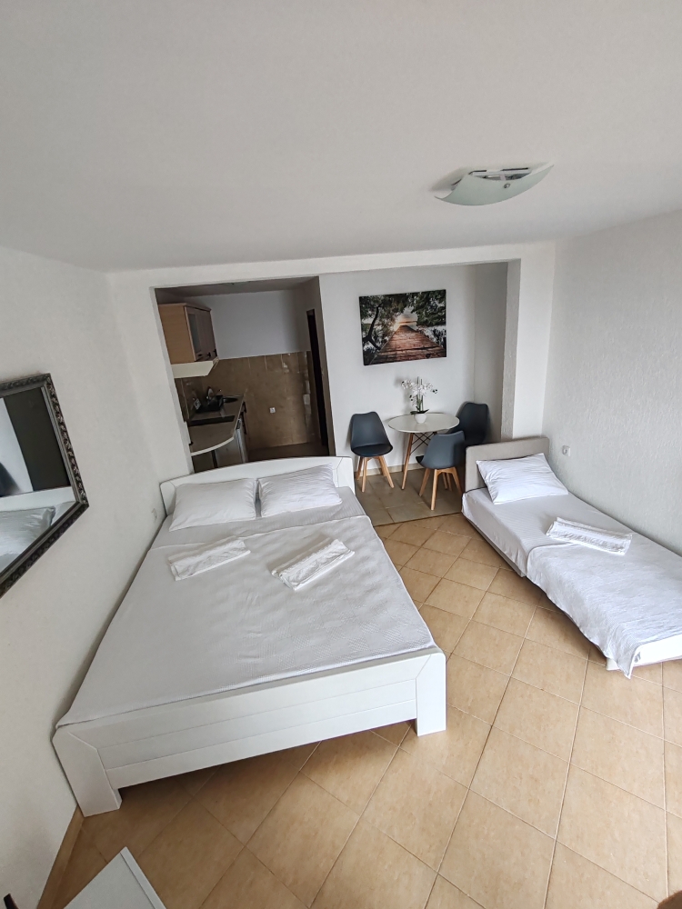 Objekat se nalazi na predivnoj lokaciji na 50 metara od male mirne plaze.Okruženje je mirno i prijatno sa svim potrebnim sadržajima u neposrednoj blizini što garantuje udoban i opuštajući odmor.Svaki apartman u ovom objektu nudi predivan pogled na more,što dodatno obogaćuje vaše iskustvo boravka,bilo da uživate u jutarnjoj kafi ili večernjem zalasku sunca a panoramski prizori koje pruža more stvaraju posebnu atmosferu.