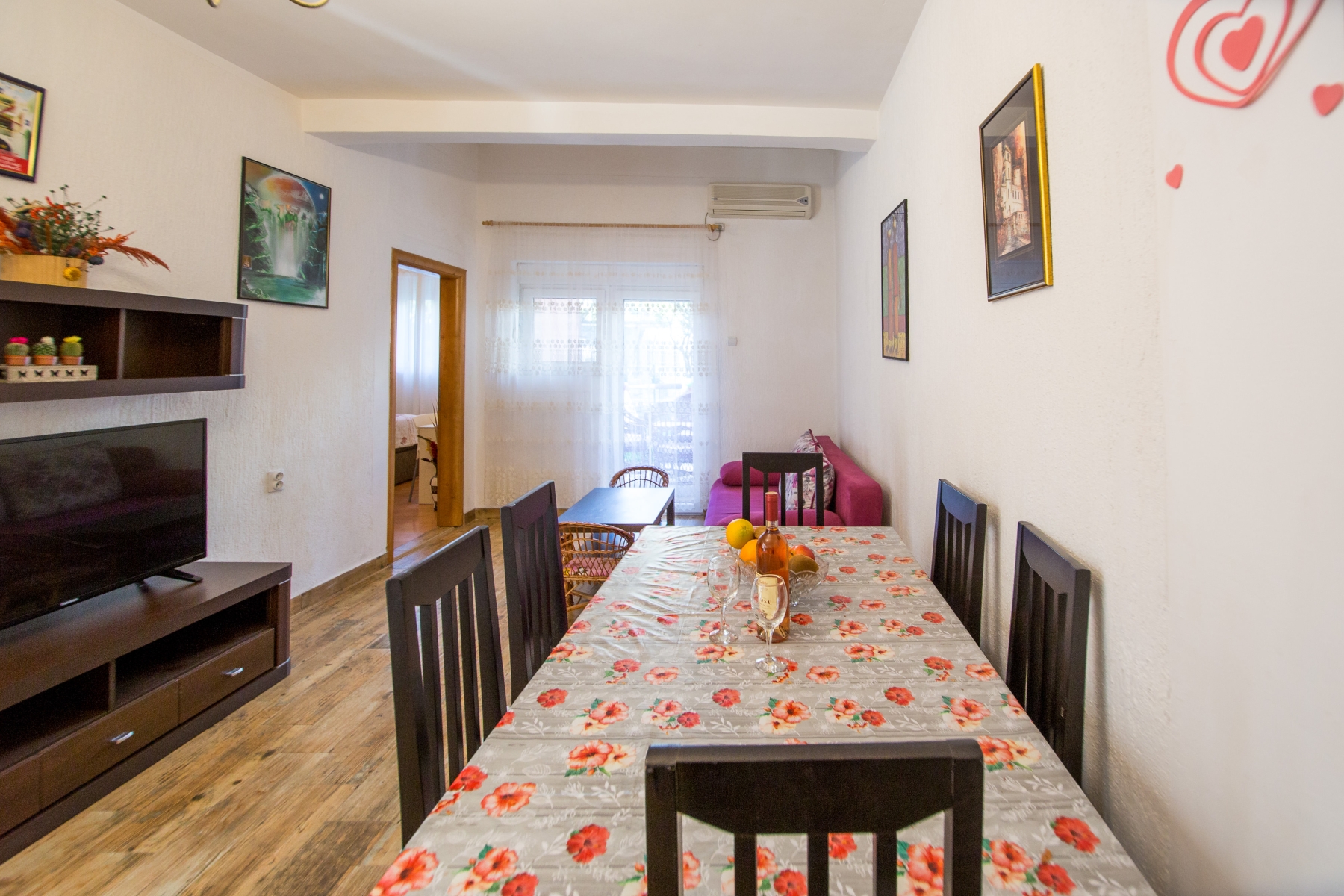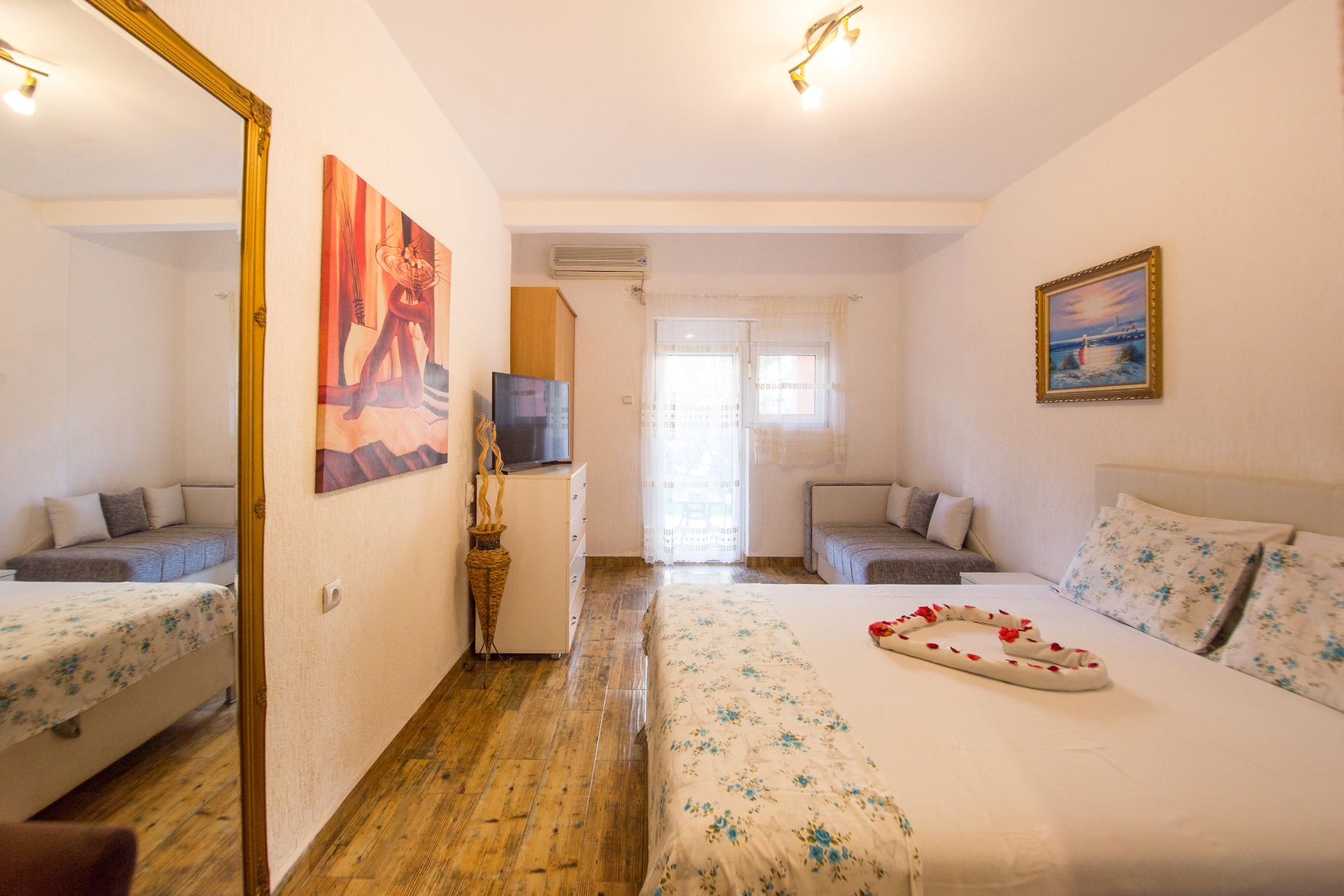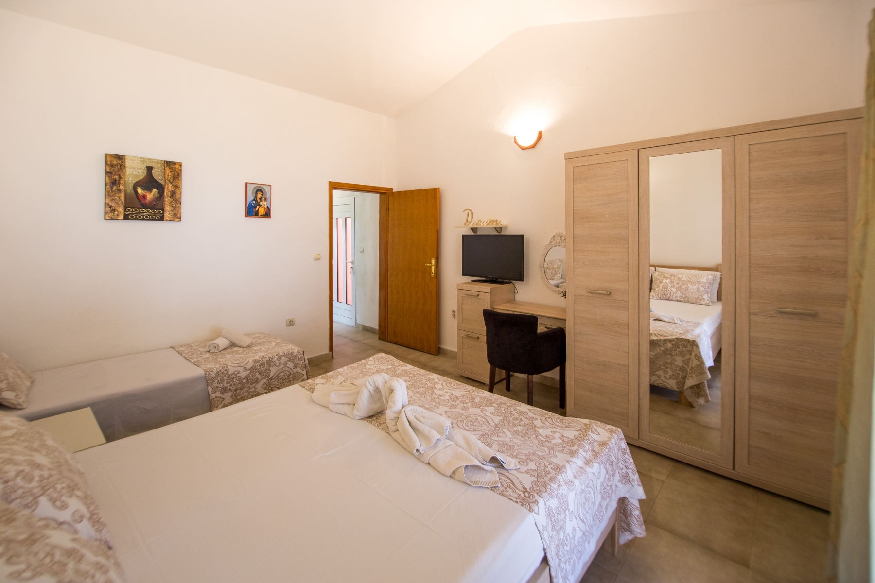 Apartmani se nalaze izmedju gradske plaze i lucica u najmirnim dijelu Petrovca .