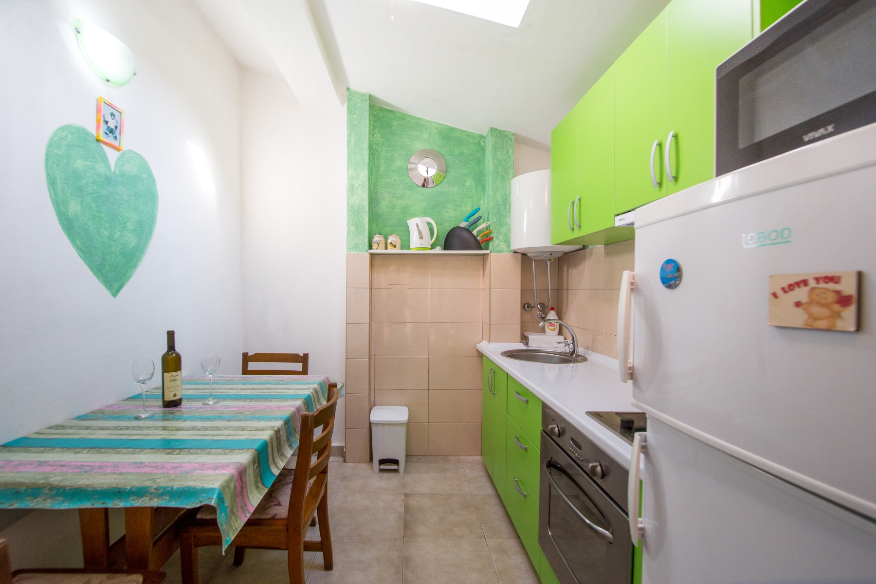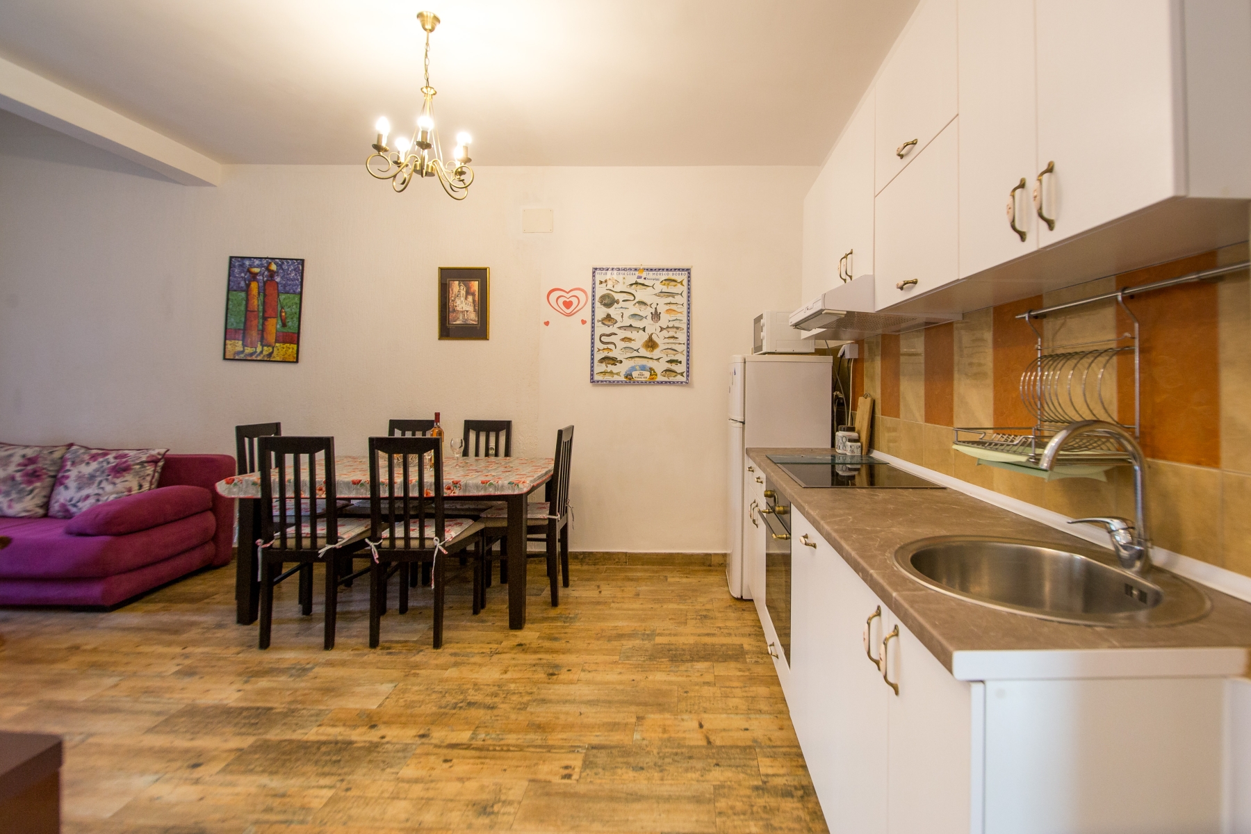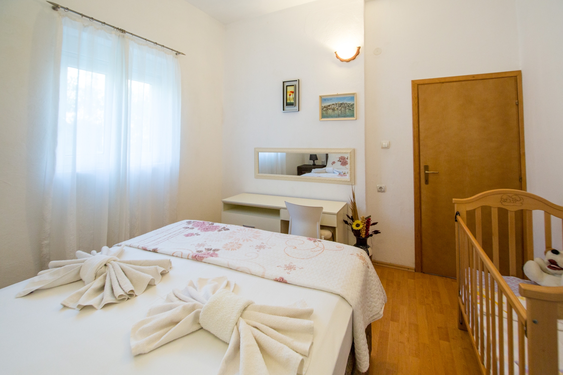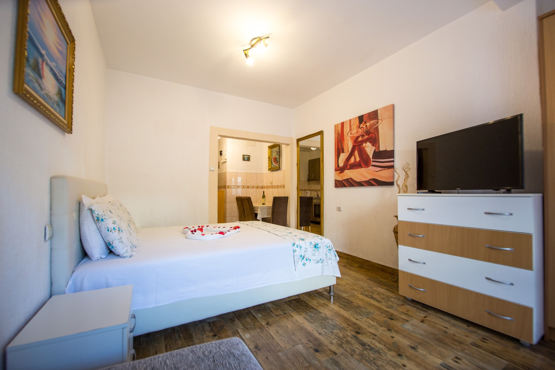 Apartmani se nalaze izmedju gradske plaze i lucica u najmirnim dijelu Petrovca .